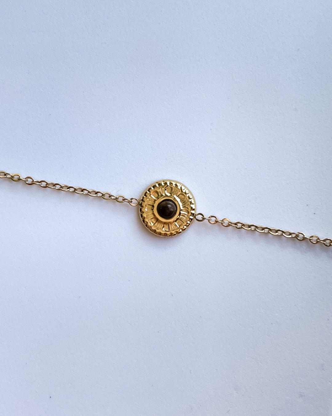 Bien que l'acier inoxydable soit résistant à l'eau, il est recommandé de retirer vos bijoux avant de nager, surtout si vous allez dans l'eau salée (comme la mer) ou dans des piscines chlorées. L'eau salée ou chlorée peut accélérer l'oxydation ou laisser des résidus sur le bijou. Pour un entretien optimal, essuyez toujours votre bijou avec un chiffon doux après avoir été en contact avec de l'eau.