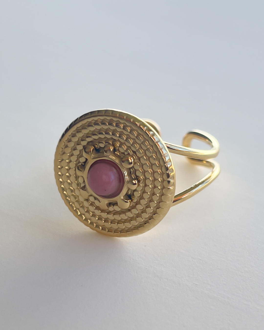 Bague dorée et rose. Craquez pour son audace et son élégance. Ajustable