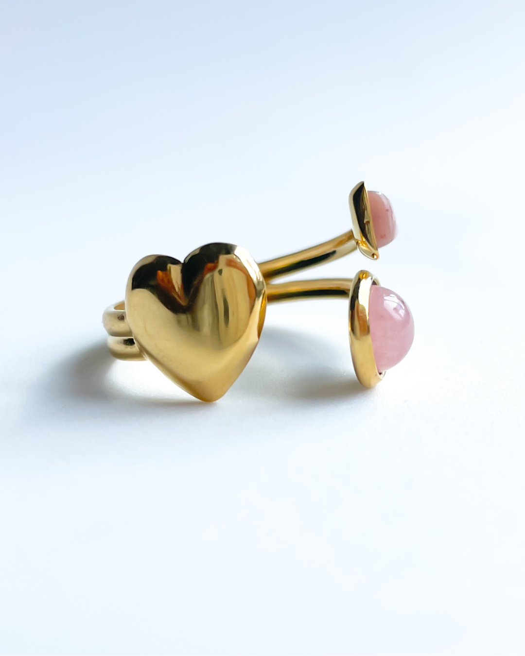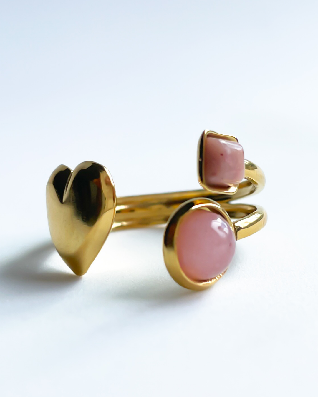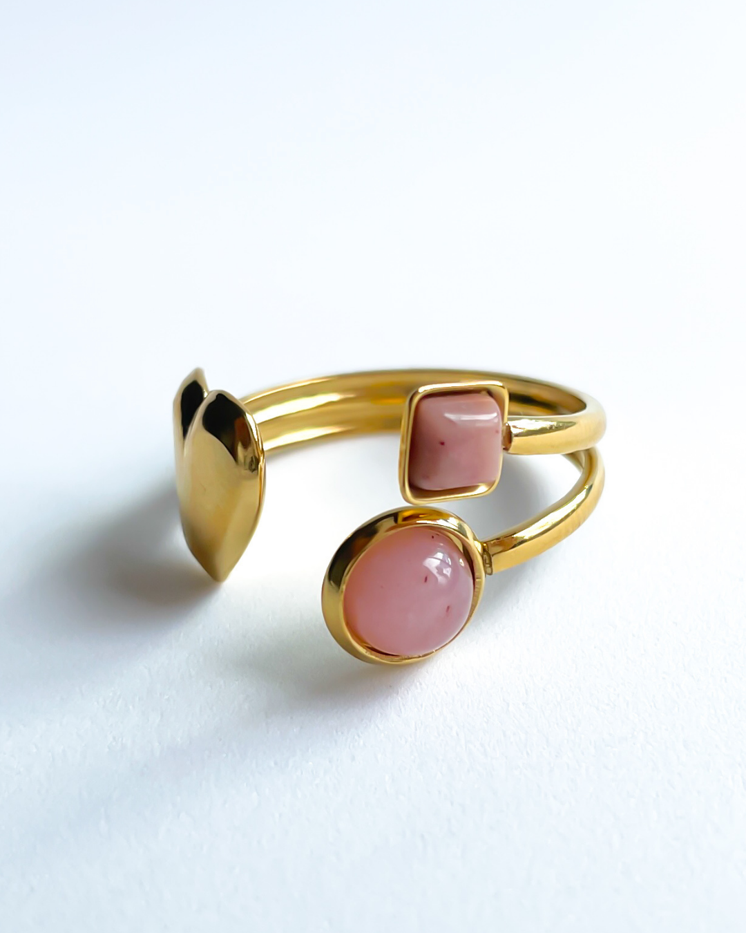 Bague dorée et vieux rose. Un bijoux qui s’accordera avec toutes vos tenues.