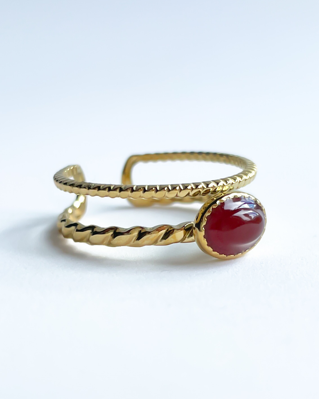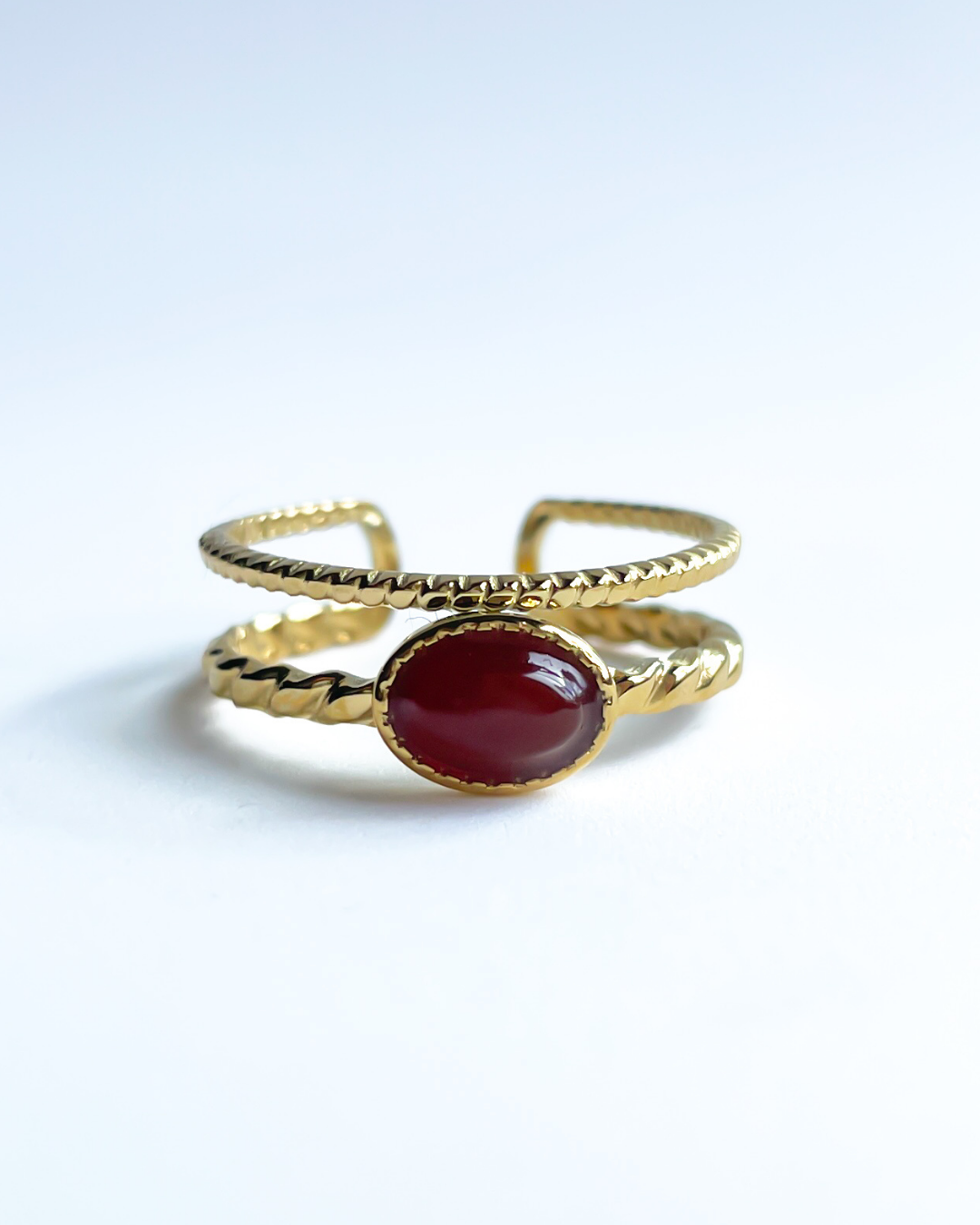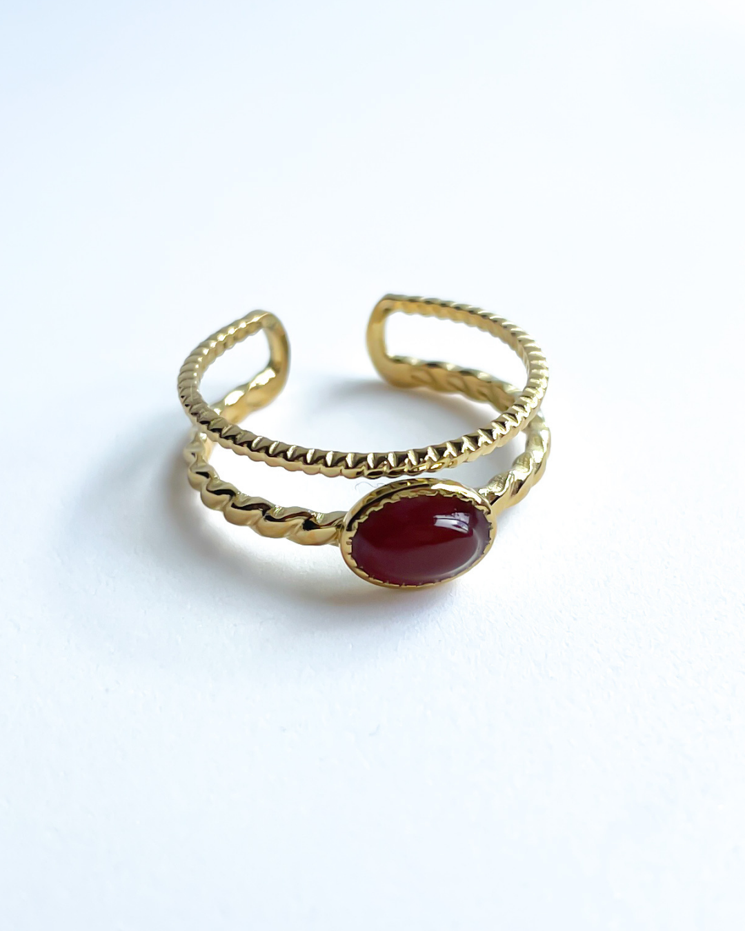 Bague dorée et cornaline. Sublimez votre tenue avec cette merveille. Ajustable.