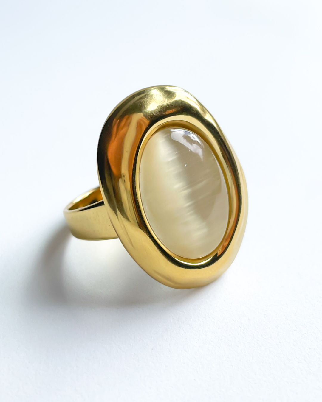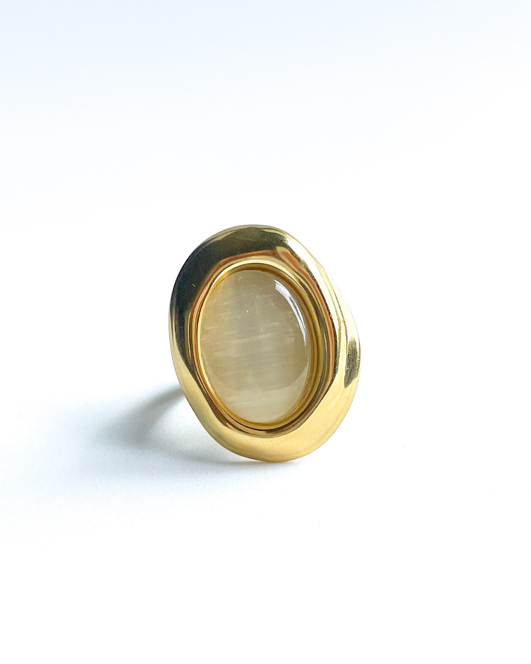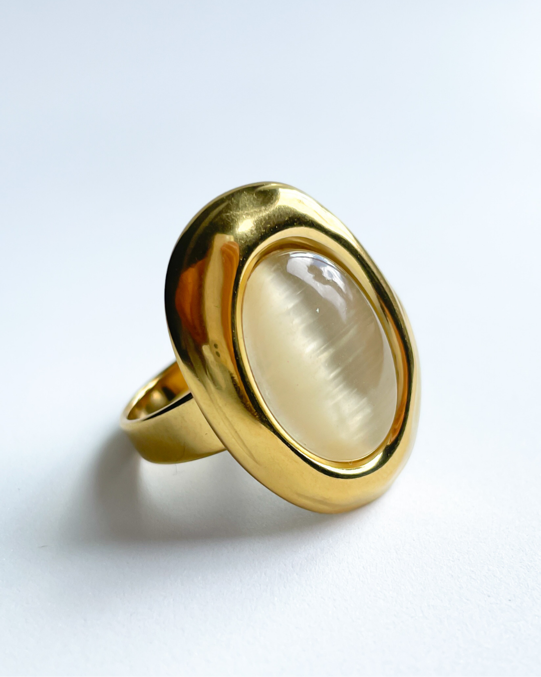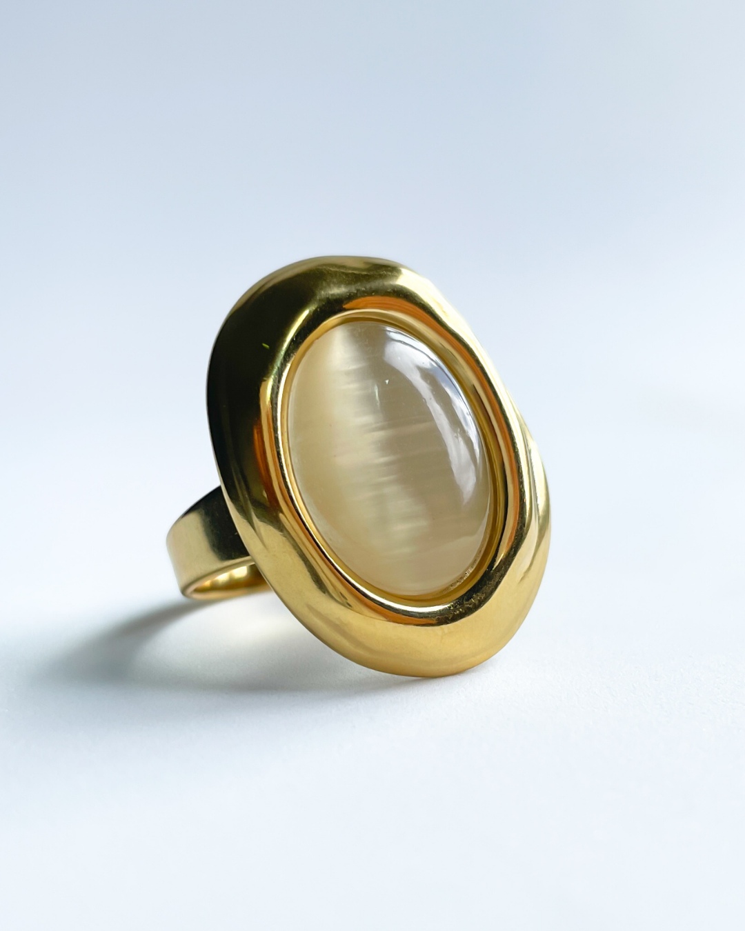 Bague dorée et beige. Craquez pour son authenticité et sa douceur. Ajustable