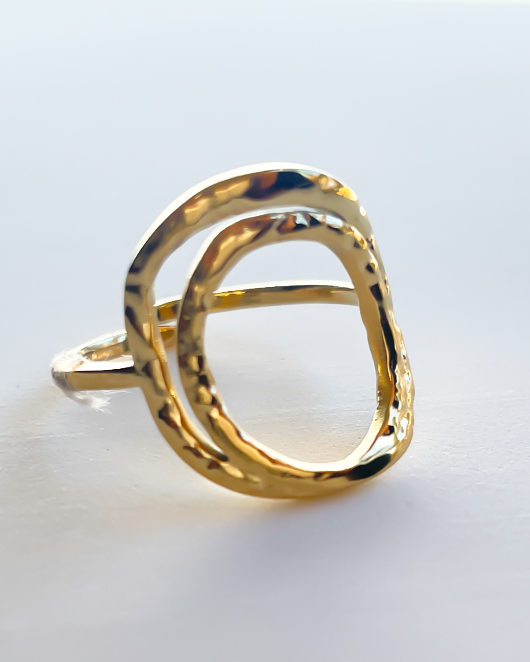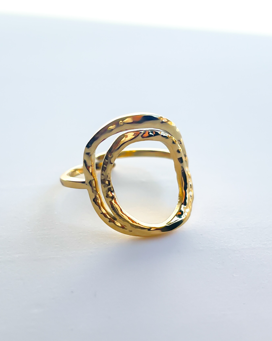 Bague déstructurée dorée. Audace et ambition. Cette bague vous accompagnera à chaque pas de votre vie.